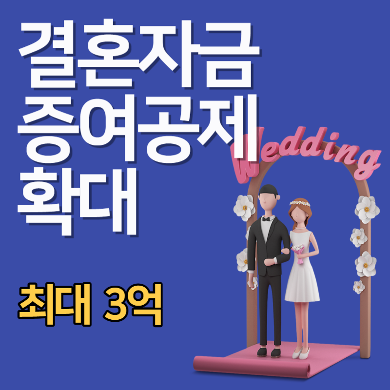 정부는 결혼자금에 대해서 증여세 공제 한도를 현행 5천만원에서 1억5천만원으로 확대하기로 세법개정안을 발표했다. 양가를 합치면 3억까지 공제를 받을 수 있다.