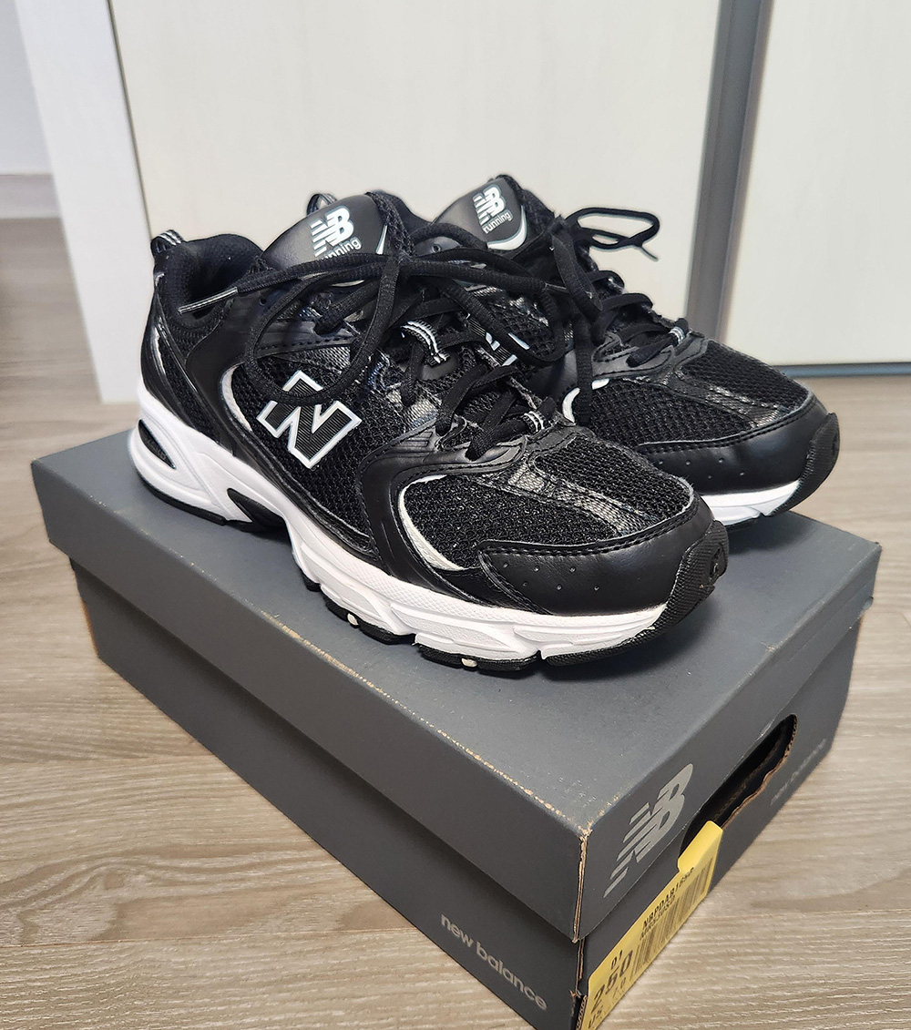 저 역시 다른 운동화들은 반사이즈 업한 255mm 사이즈를 신는데 530의 경우 정사이즈인 250mm를 신었습니다.
