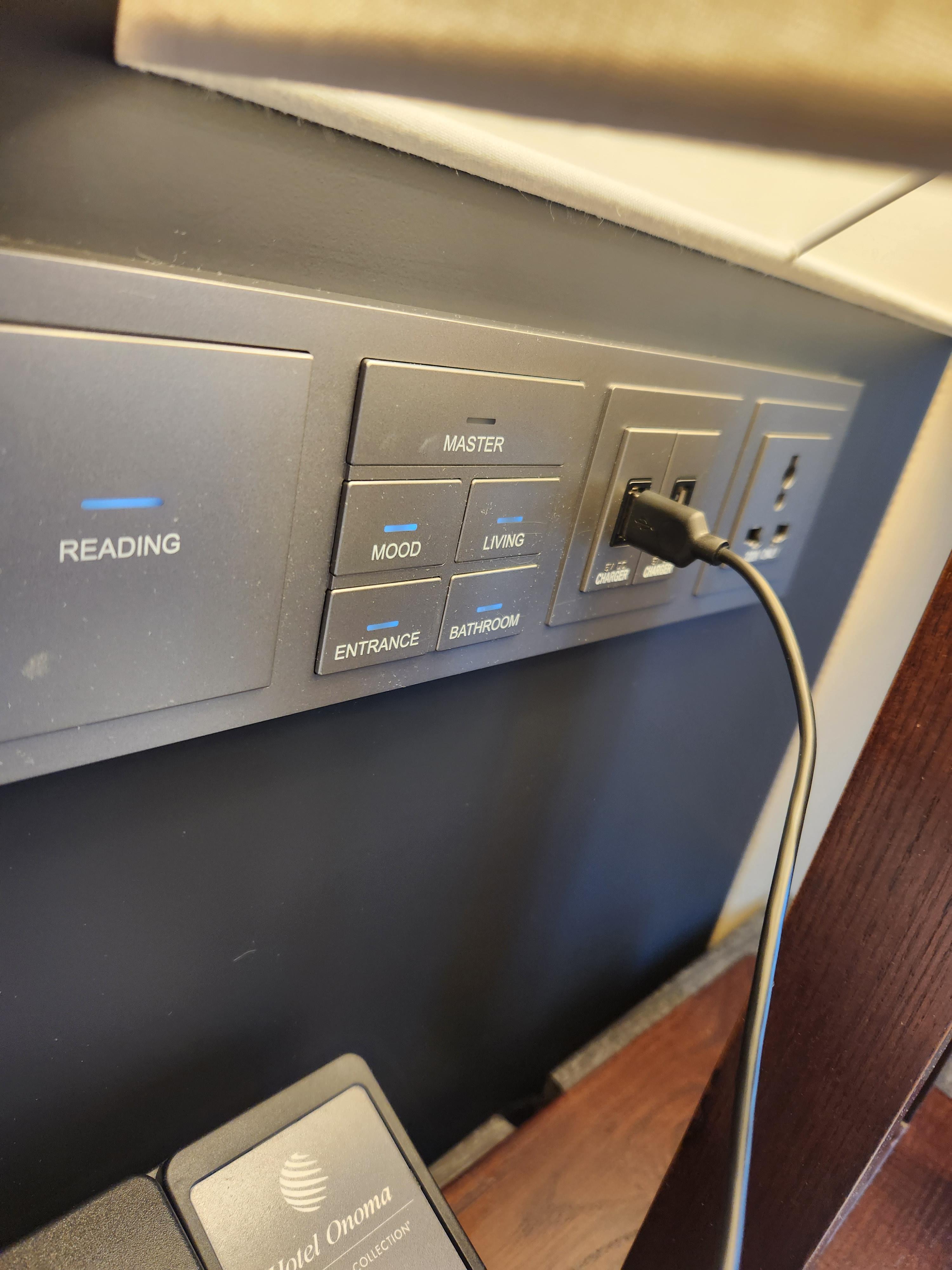 딱 하나 아쉬웠던 점은 핸드폰 충전시 침대 양쪽에 있는 USB포트로 충전하면 충전 속도가 다소 느려 침대에서 떨어진 곳에 위치한 콘센트에 꽂아 충전해야 했었습니다.