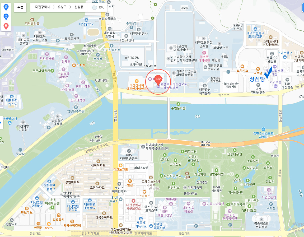 호텔과 연결된 신세계 백화점이 있으며 주변 도보 가능한 거리(대략 15분 이내)에 국립 중앙 과학관, 한밭수목원, 대전 시립 미술관, 성심당(DCC점) 등이 위치해 있습니다.