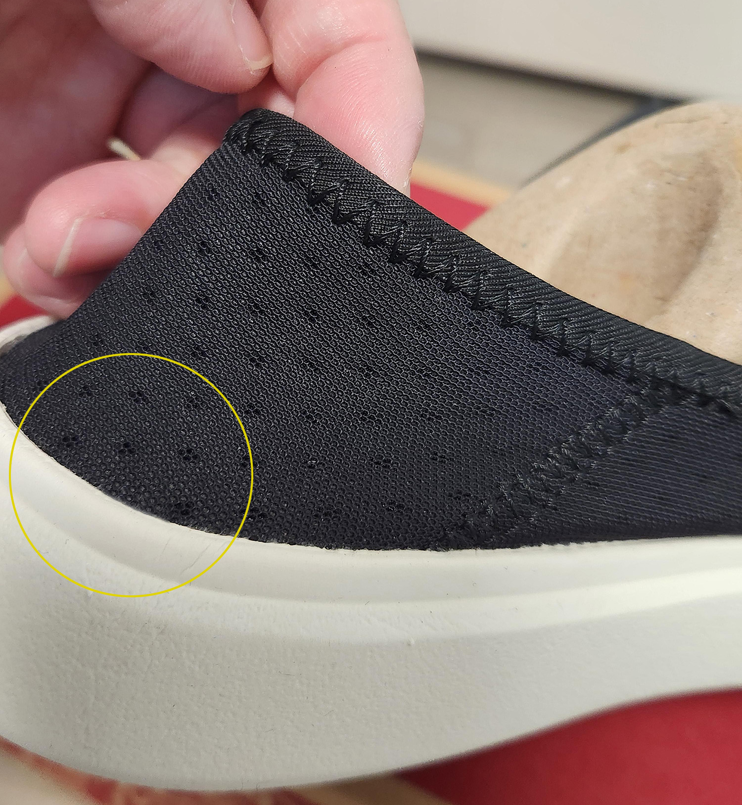 바디의 뒷 부분은 안쪽 펀칭된 스판 소재에 겉에 얇은 메쉬가 이중으로 되있는데 뮬(Mule) 스타일로 신을 경우 뒷꿈치가 닿는 메쉬 부분이 쉽게 찢어진다는 일부의 후기들을 확인했던 기억이 있습니다.