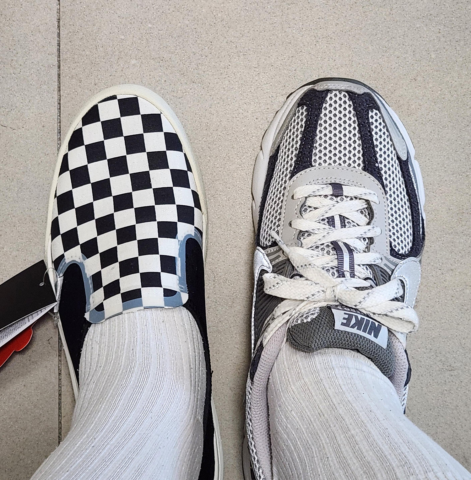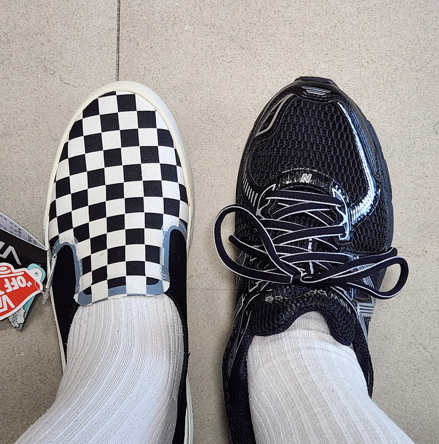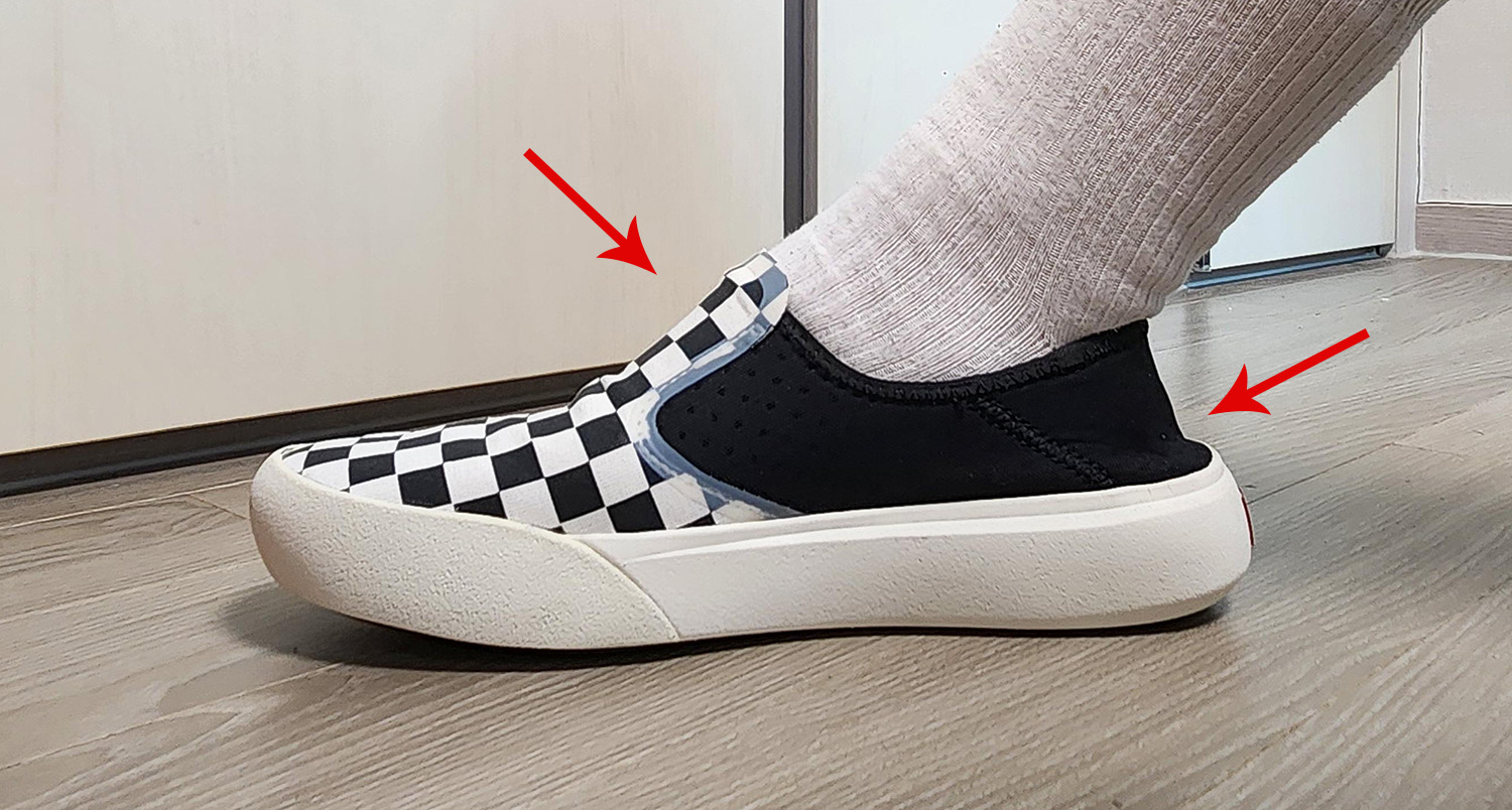 개인적으로 발등이 높은 편이라 슬립온을 신으면 위와 같은 형태가 나와 쉐입도 안이쁘고 발도 불편해 잘 안신게 됩니다.