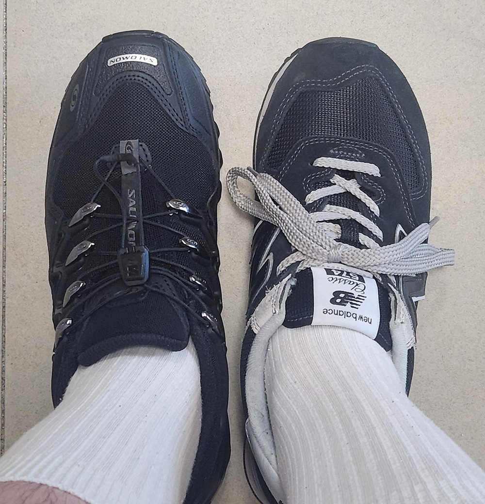 트레킹화나 러닝화는 특성상 신었을 때 발이 신발 안에서 움직이지 않고 잘 잡아줘야 하는데 그래서 그런지 느껴지는 착화감은 같은 사이즈의 다른 일반적인 운동화에 비해 작게 나온다는 점 이었습니다.