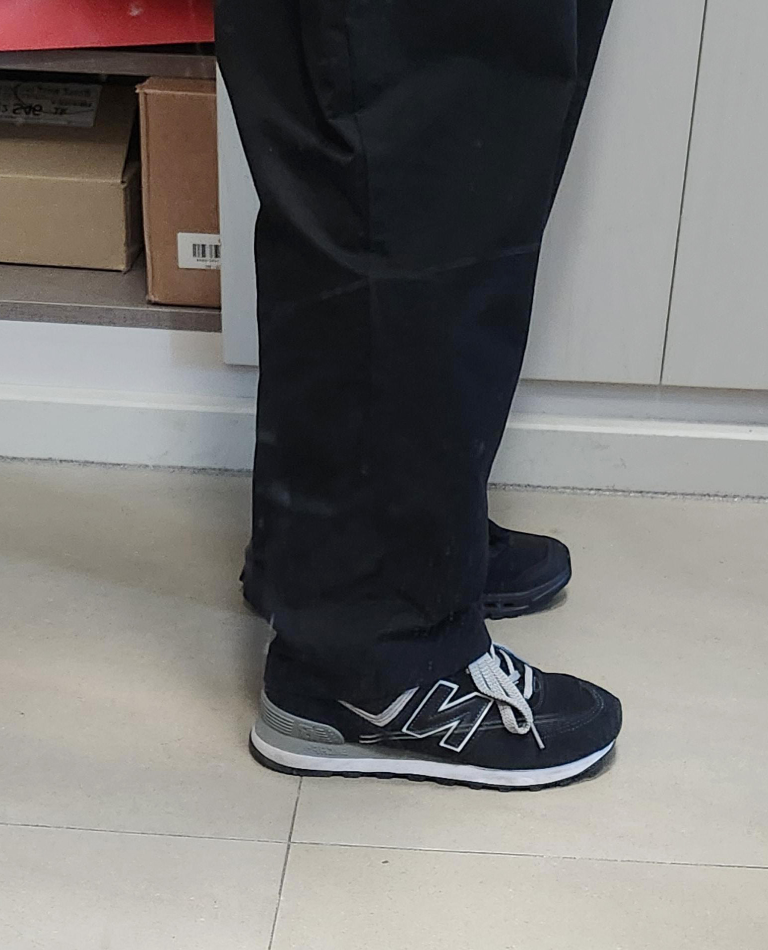 평소 250mm가 정사이즈이며 발볼은 넓지 않지만 발등이 약간 높은 편입니다. 최근 구매한 운동화들은 반사이즈 업(255mm)해서 신고 있으며 뉴발란스 574역시 255mm입니다.