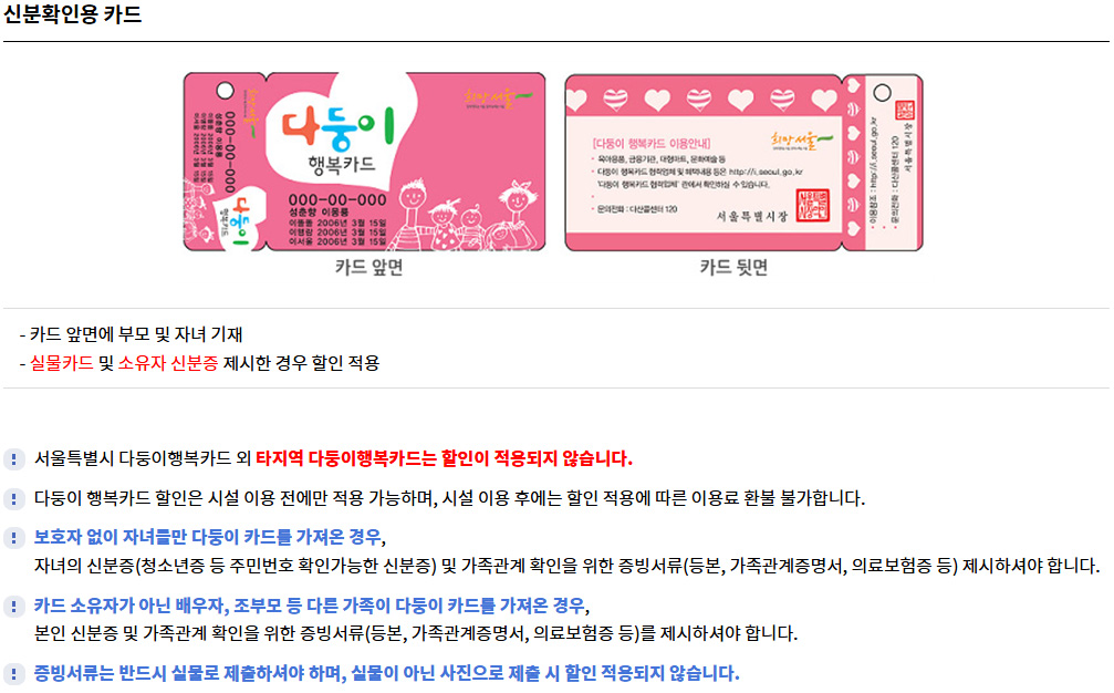 * 만5세까지는 무료입장으로 반드시 증빙서류 지참하셔야 합니다.(사진불가)