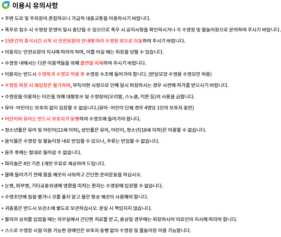 - 이용시간: 오전 9시 ~ 오후 6시 (잠실 물놀이장은 저녁 8시까지 운영)